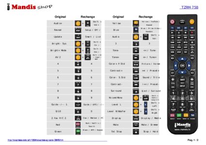 Cette télécommande remplace entièrement votre TZRM-75B et offre toutes les fonctions de l'originale.