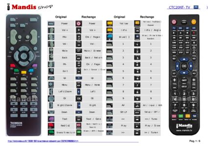 Un document est inclus pour vous aider à utiliser facilement la nouvelle télécommande, en indiquant la correspondance des boutons.