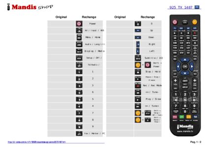 Un document est inclus pour vous aider à utiliser facilement la nouvelle télécommande, en indiquant la correspondance des boutons.