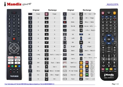 Un document est inclus pour vous aider à utiliser facilement la nouvelle télécommande, en indiquant la correspondance des boutons.