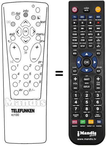 Télécommande qui remplace celle d'origine car elle possède les mêmes fonctions.