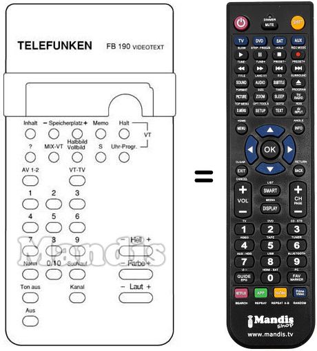 Télécommande qui remplace celle d'origine car elle possède les mêmes fonctions.