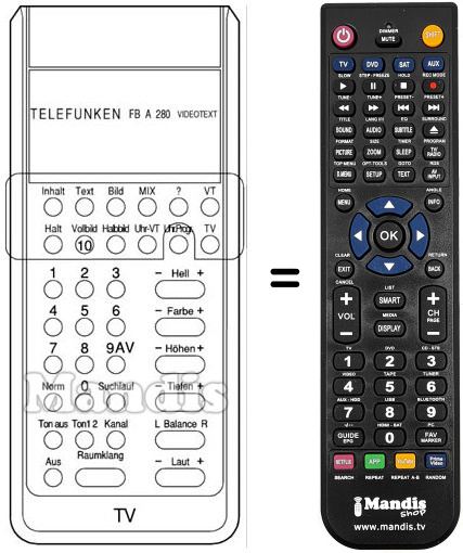 Télécommande qui remplace celle d'origine car elle possède les mêmes fonctions.