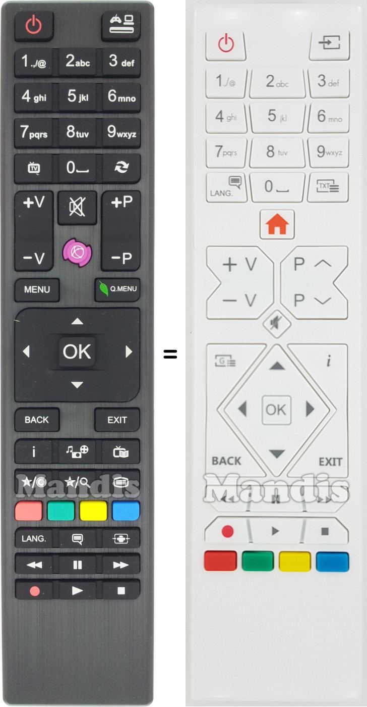 Télécommandes équivalentes qui remplacent la télécommande TELEFUNKEN RC4876 (30089240) et possèdent exactement les mêmes fonctions :