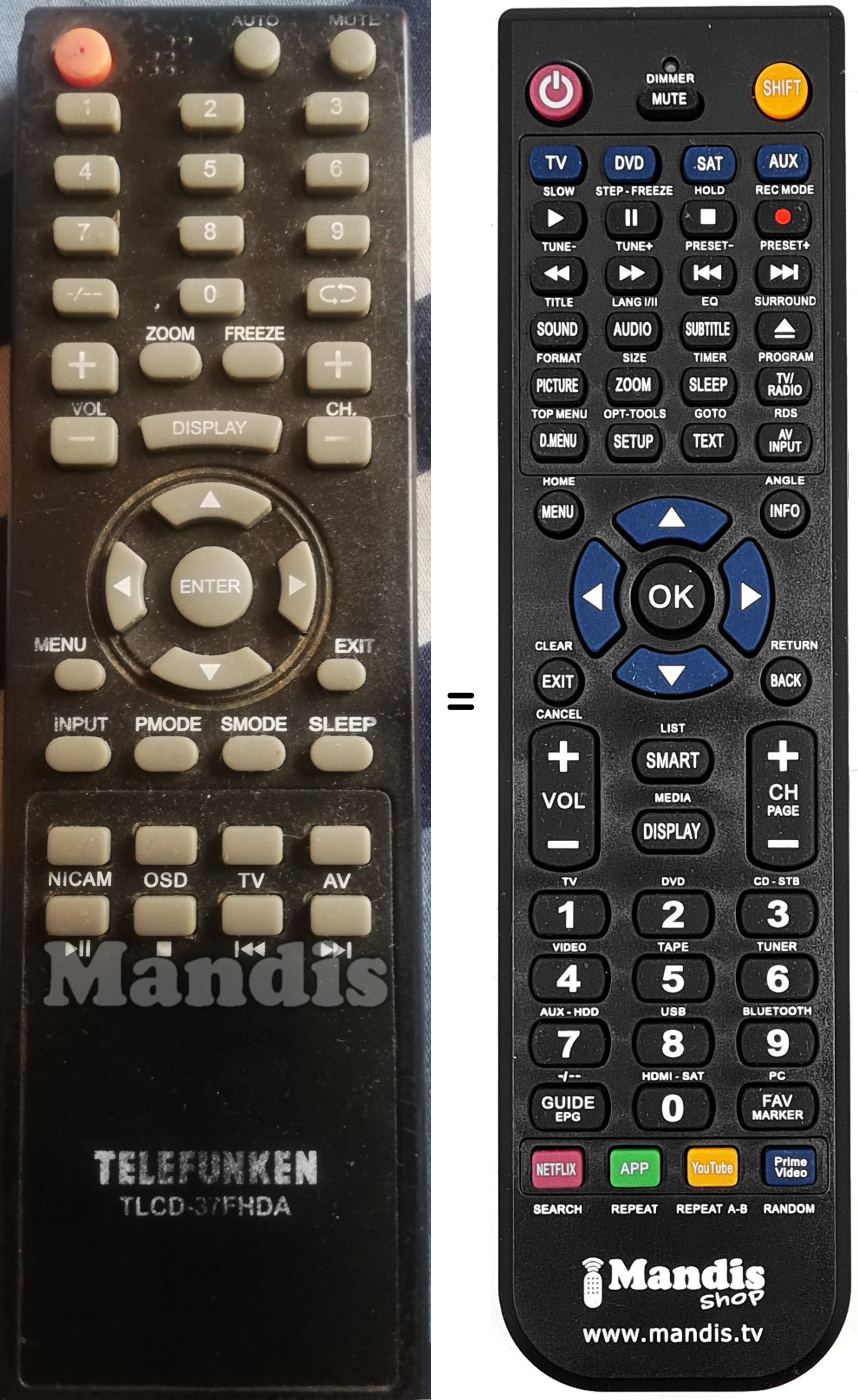Télécommande qui remplace celle d'origine car elle possède les mêmes fonctions.