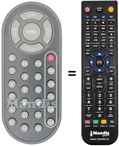 Télécommande qui remplace celle d'origine car elle possède les mêmes fonctions.