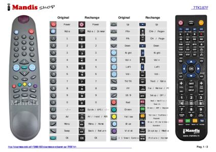 Un document est inclus pour vous aider à utiliser facilement la nouvelle télécommande, en indiquant la correspondance des boutons.