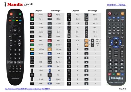 Accueil > Marques > Télécommandes Thomson > Télécommande pour THOMSON THS804