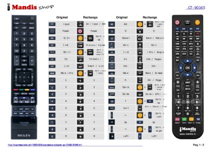 Un document est inclus pour vous aider à utiliser facilement la nouvelle télécommande, en indiquant la correspondance des boutons.
