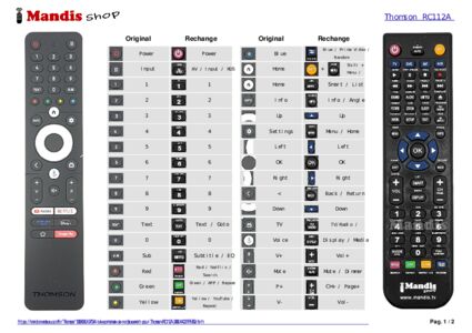 ![]() | 13 octobre 2025 Il est possible d'afficher la notice interactive des touches de la télécommande équivalente Thomson RC112A. |