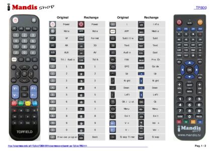 Un document est inclus pour vous aider à utiliser facilement la nouvelle télécommande, en indiquant la correspondance des boutons.