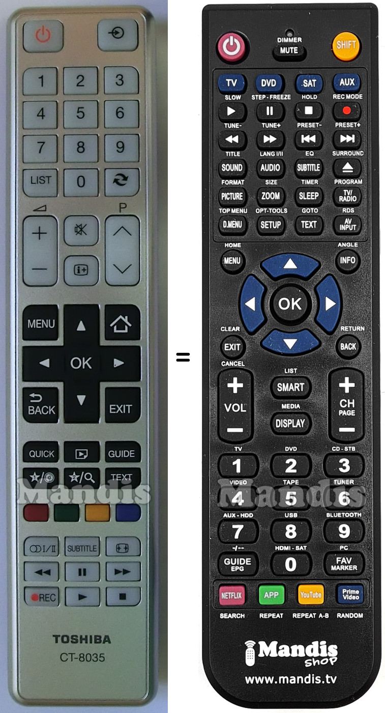 Télécommande pour TOSHIBA CT-8035 (75037328)