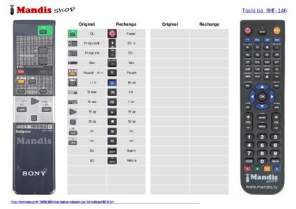 Un document est inclus pour vous aider à utiliser facilement la nouvelle télécommande, en indiquant la correspondance des boutons.