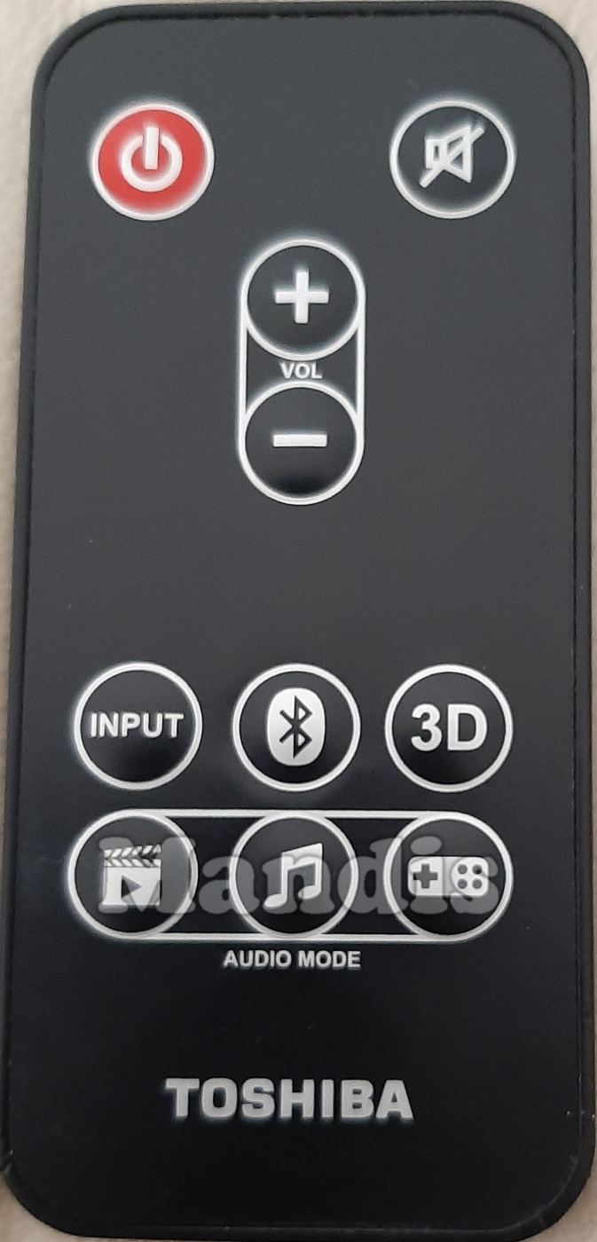 Télécommande d'origine PA5075E-1SPA pour soundbar de la marque Toshiba. Il s'agit d'un modèle de télécommande d'origine.