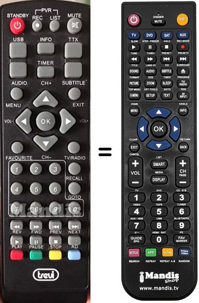 Télécommande qui remplace celle d'origine car elle possède les mêmes fonctions.