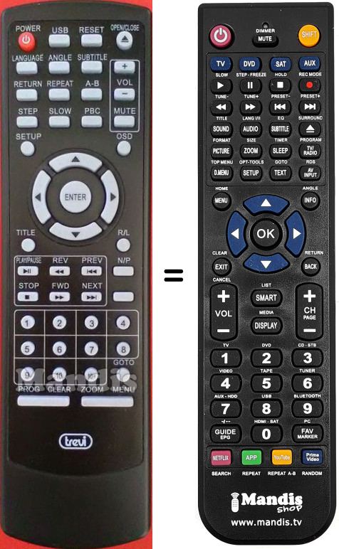 Télécommande qui remplace la télécommande d'origine DXV3530USB car elle possède les mêmes fonctions.