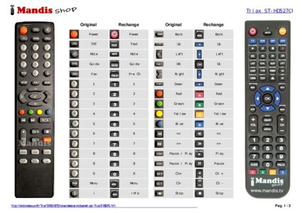 Un document est inclus pour vous aider à utiliser facilement la nouvelle télécommande, en indiquant la correspondance des boutons.