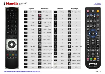 Un document est inclus pour vous aider à utiliser facilement la nouvelle télécommande, en indiquant la correspondance des boutons.