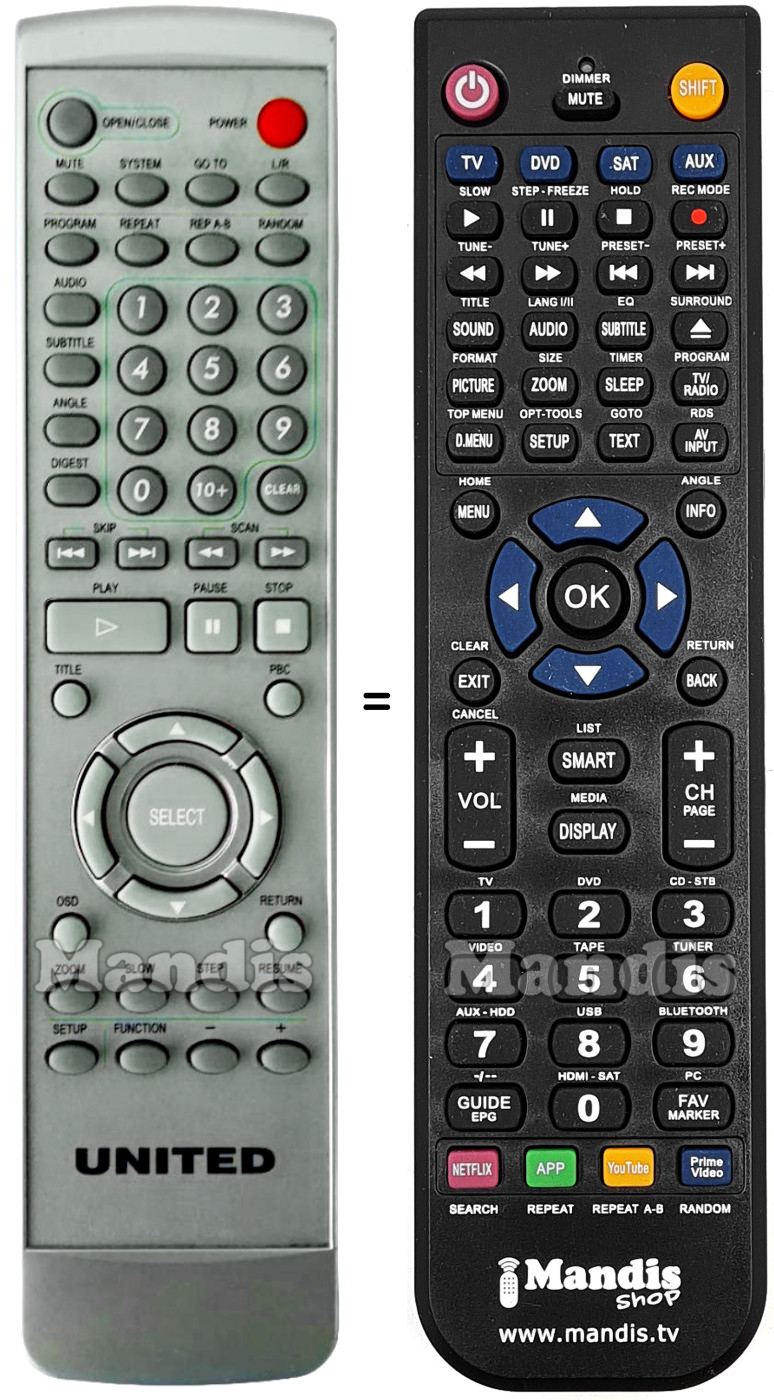 Cette télécommande remplace entièrement votre UNITED001 et offre toutes les fonctions de l'originale.
