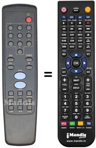 Télécommande qui remplace celle d'origine car elle possède les mêmes fonctions.