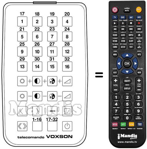 Télécommande qui remplace celle d'origine car elle possède les mêmes fonctions.