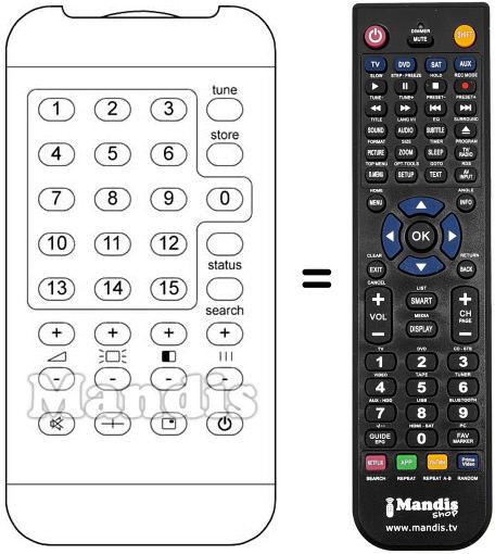 Télécommande qui remplace celle d'origine car elle possède les mêmes fonctions.