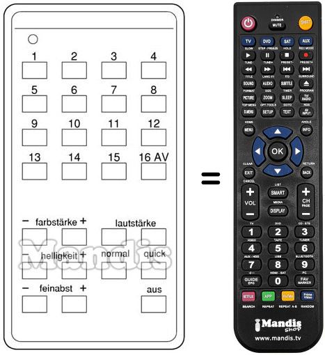 Télécommande qui remplace celle d'origine car elle possède les mêmes fonctions.