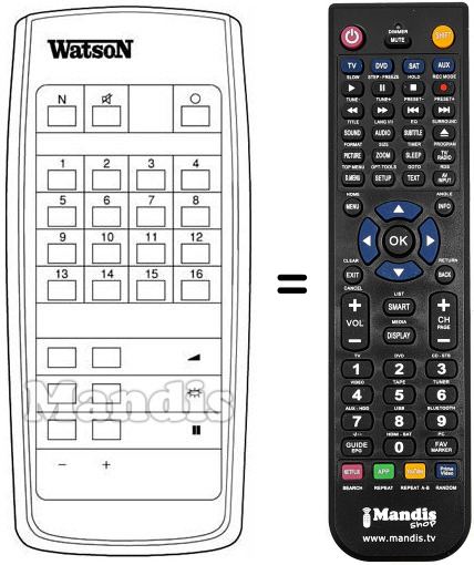 Télécommande qui remplace celle d'origine car elle possède les mêmes fonctions.