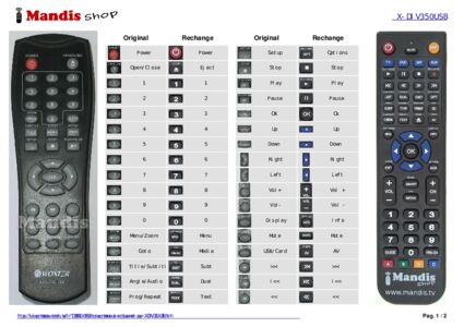 Un document est inclus pour vous aider à utiliser facilement la nouvelle télécommande, en indiquant la correspondance des boutons.
