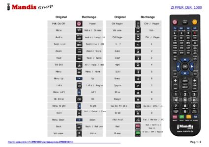Un document est inclus pour vous aider à utiliser facilement la nouvelle télécommande, en indiquant la correspondance des boutons.