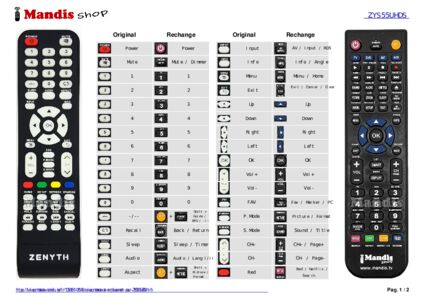 Un document est inclus pour vous aider à utiliser facilement la nouvelle télécommande, en indiquant la correspondance des boutons.
